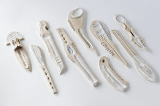 La pratique de Denise Bresciani touche à l’architecture, au design et aux arts plastiques sans que l’on sente l’influence d’une école ou d’un style. Son approche intuitive suit des voies expérimentales inspirées par la nature, l’archéologie et l’architecture vernaculaire. Une filiation qui l’a conduite, au fil de voyages en Afrique ou en Inde, au Mexique ou au Japon, à s’emparer de la terre pour donner forme à un travail de céramique organique spontané, quasi-primitif. Procédant d’une succession de gestes alliant maîtrise technique et recherche dans les matériaux, Denise Bresciani présente une collection d’objets mutants à mi-chemin de l’utilitaire et de la sculpture.